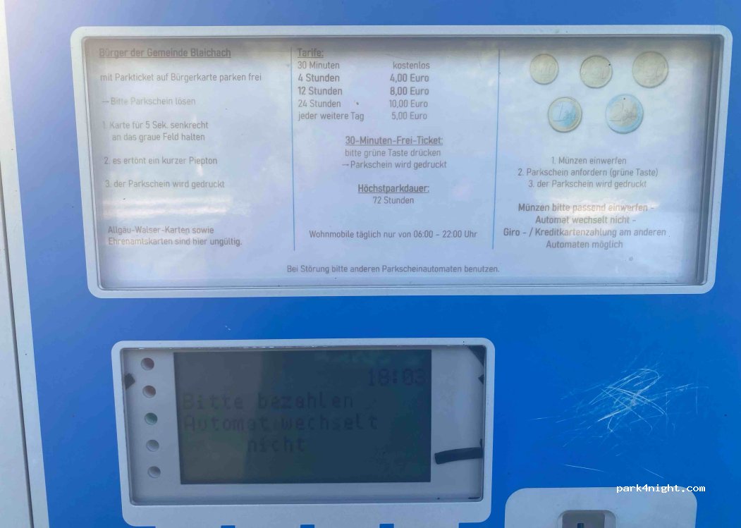 4€ / 4h; 8h / 12h; 10 € / 24h jeder weitere tag 5€