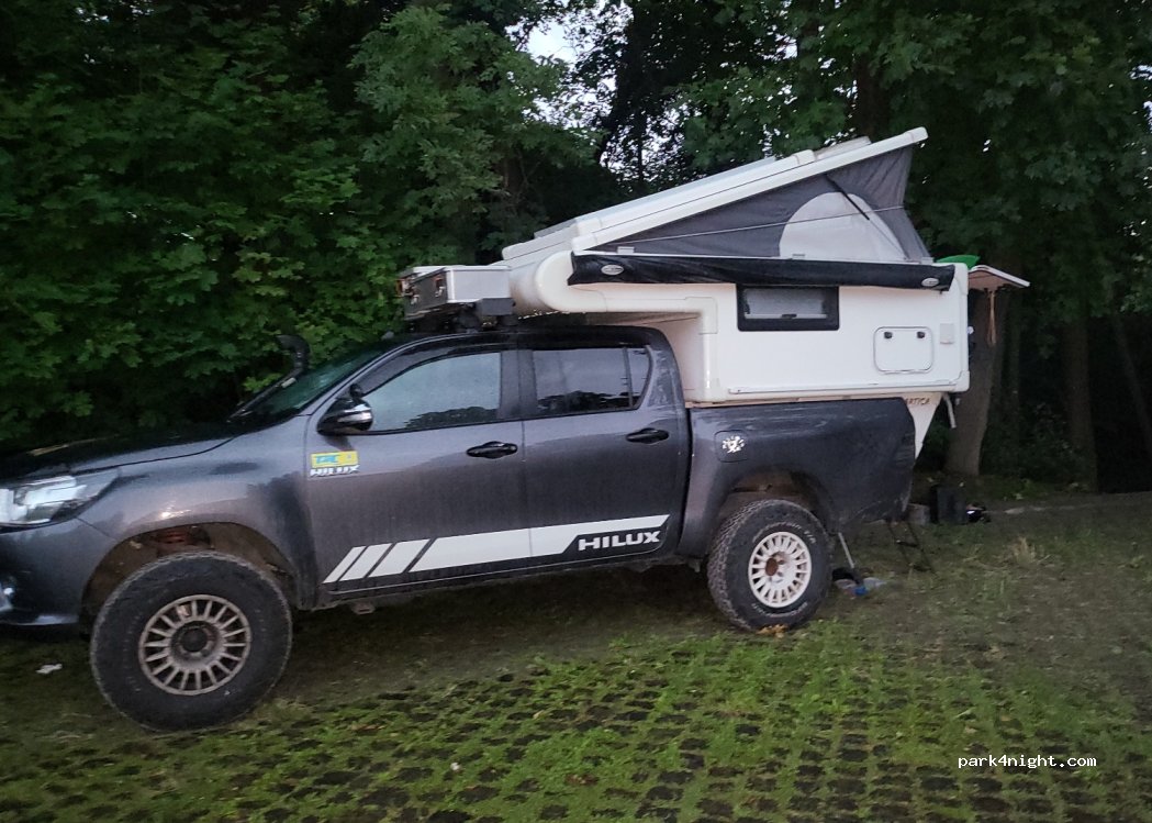 Gut zu stehen auf gepflasterter Fläche und angrenzend an hohe Bäume. Allerdings permanenter Lärm von der nahen Autobahn, teilweise sehr unangenehm.