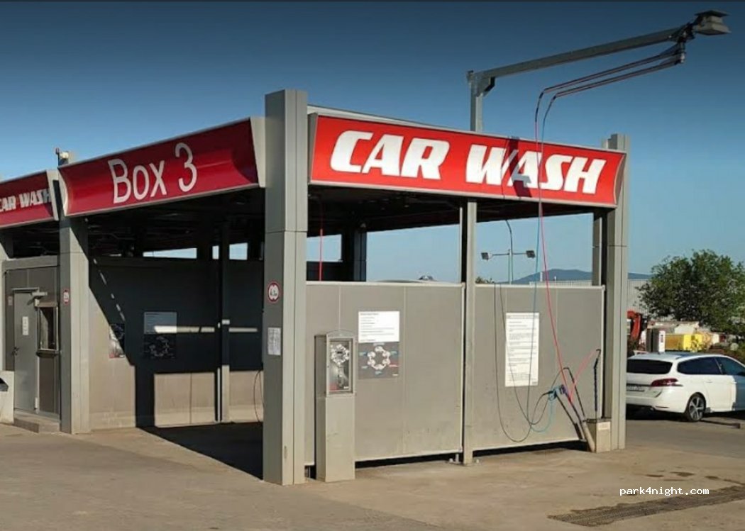 Autowäsche. An der Seite auch ein Platz für hohe Fahrzeuge wie Wohnmobile, aber ohne Bühne um das Dach zu erreichen !!!