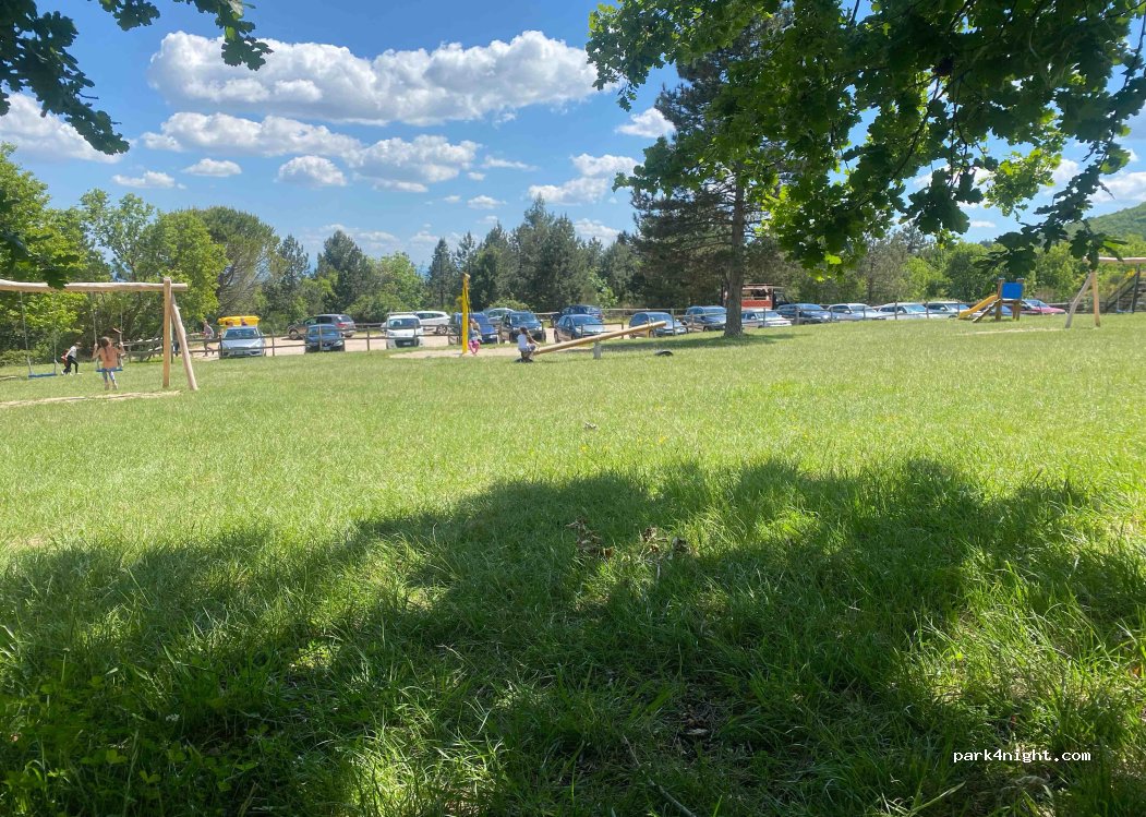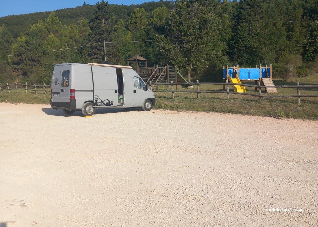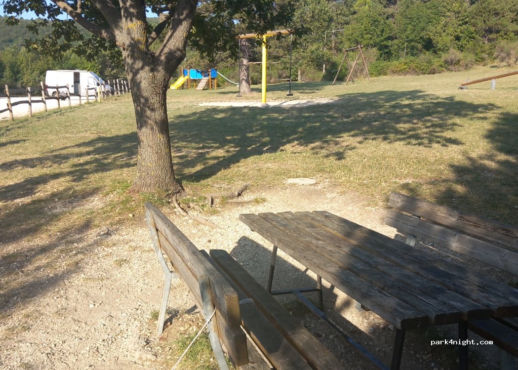 Molto tranquillo, in mezzo al bosco vicino ad un area giochi con tavoli e griglie per picnic. Fondo sterrato, molti posti liberi e piani. Abbiamo trascorso un'ottima notte!