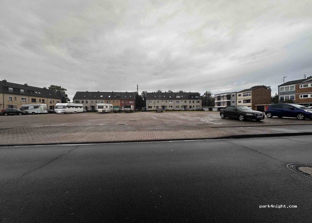 Grand parking en pleine ville, qui sert également de fête foraine certains week-ends. Boulangerie et S-Bahn vers Mönchengladbach ou Düsseldorf à 100 m chacun, plusieurs supermarchés et AsiaTherme à environ 500 m