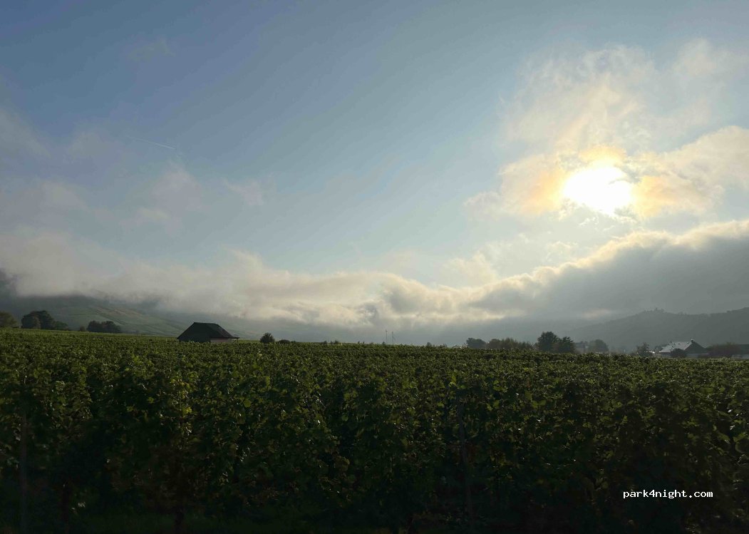 Bis auf gelegentlich mal ein Fahrzeug am Morgen steht man hier sehr ruhig, auf einer kleinen Wiese direkt zwischen den Weinbergen. Auffahrkeile sind empfehlenswert. Wer eine Weinverkostung mitmacht findet schnell seinen Favoriten oder kann sich vielleicht nicht entscheiden. Wer was kauft steht hier kostenlos. Faires Konzept! Wiederholung ist vorprogrammiert.