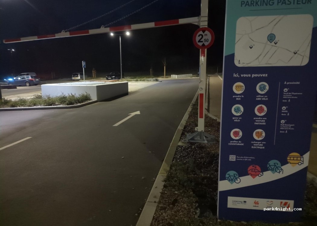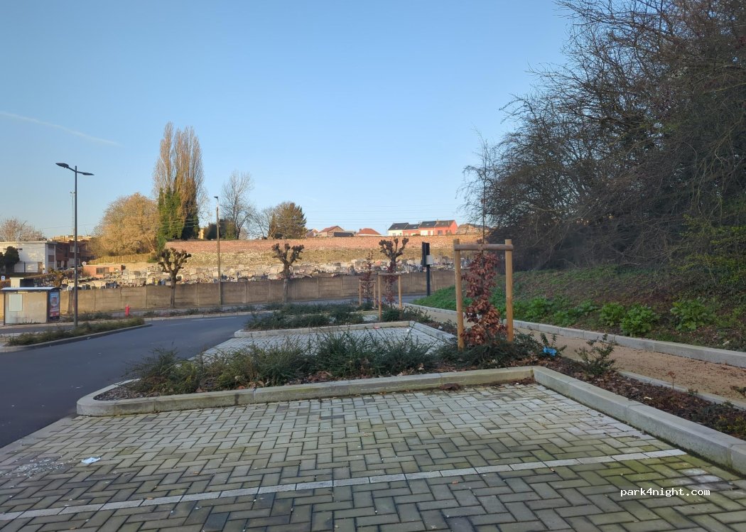 - not many cars parked there. But a social place, you will hear people talking. - next to busy roads. - opposite a few residences. But Liège has a large homeless population. So nobody cares if you car camp. - many street lights on the parking. - height limit 2,5m