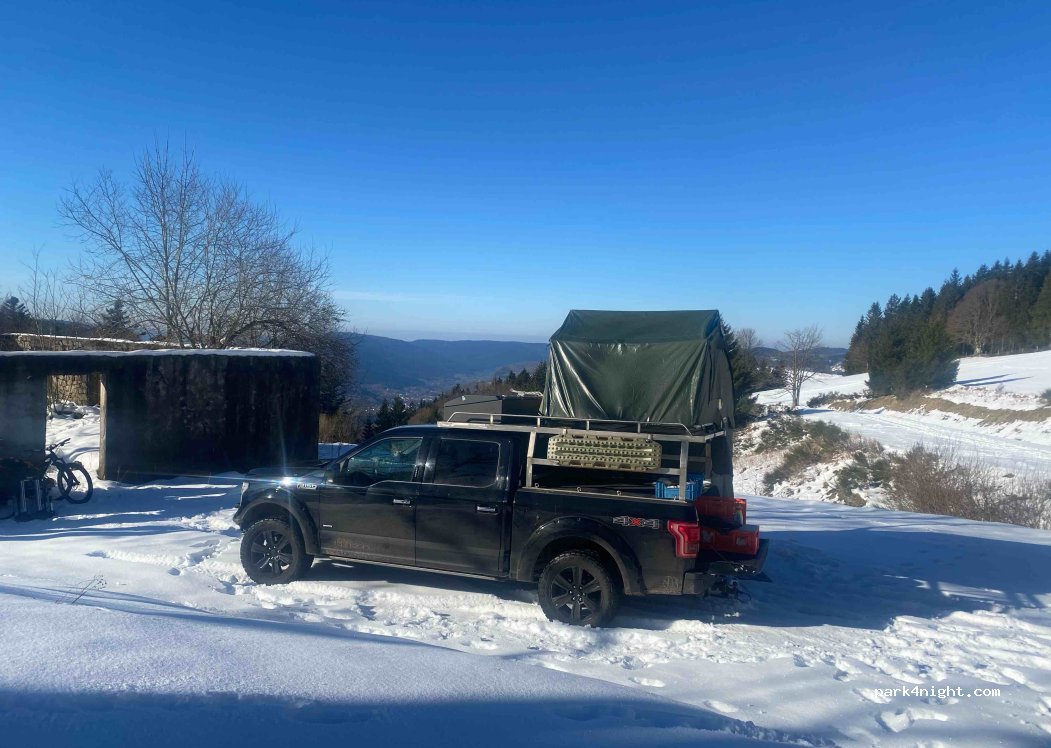 nous avons passé une nuit sur ce site, superbe vue sur les forêts, à proximité point de départ de randonnée avec une table pique-nique abritée, nous n'avons vu passer personne tout le temps où nous sommes restés, on se croit seul au monde, pour monter le chemin est plein de cailloux et il y a quelques passages difficiles, accès sans problème avec une voiture particulière ou un van