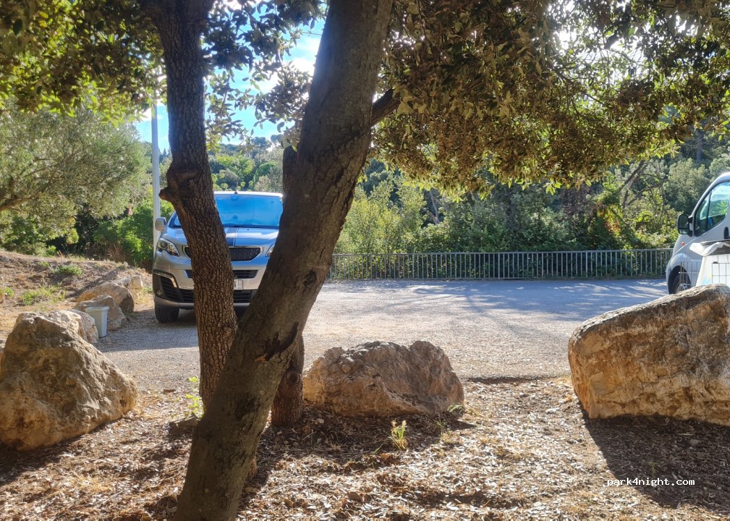 Bonjour le parking n'est autorisé que de jours pour tout véhicule de camping (voiture compris). Car placé en zone forestière. Merci de ne pas y cuisiner avec un réchaud la journée non plus haut risque d'incendie.