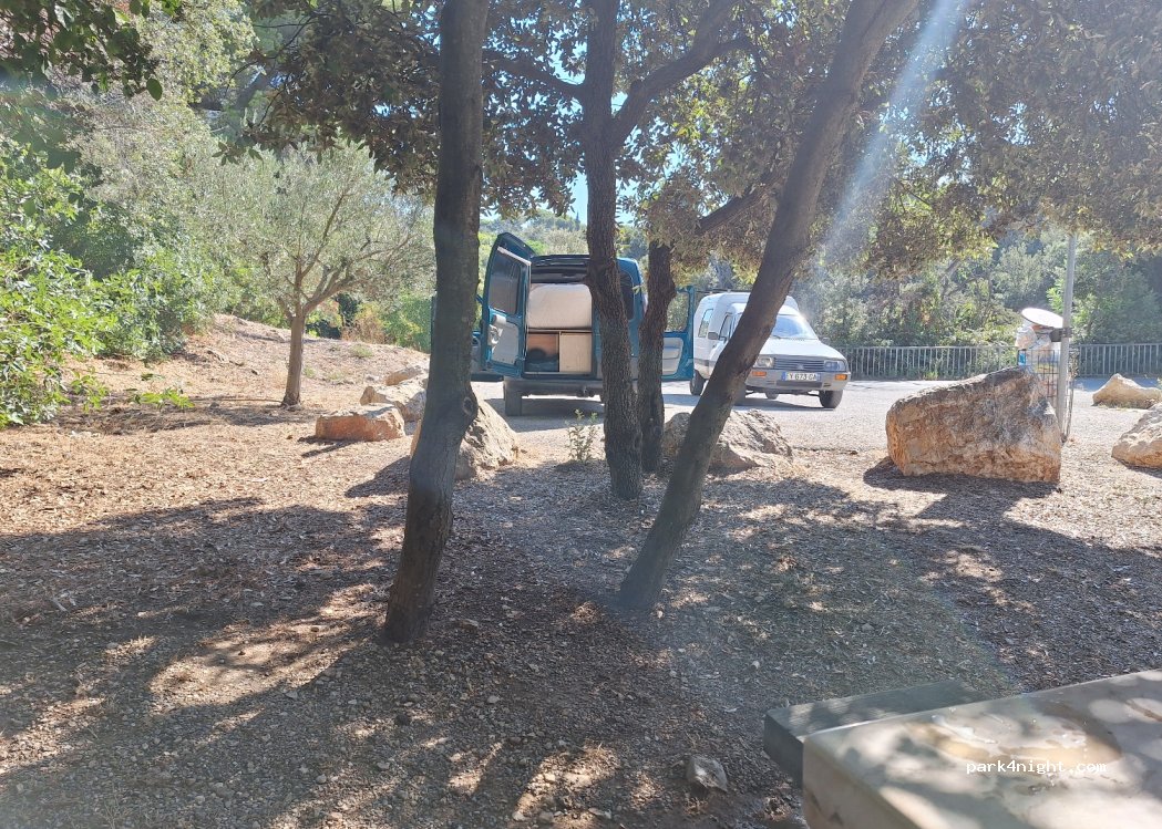 Small car park next to a pretty park, start of hiking in the massif, quiet.