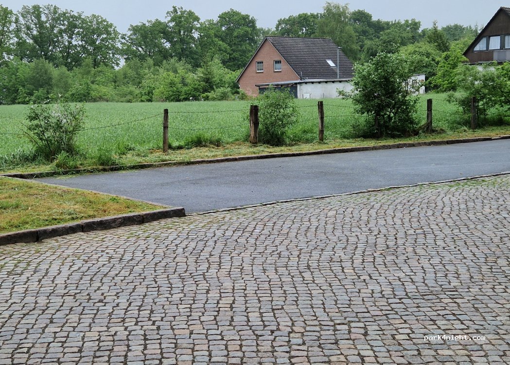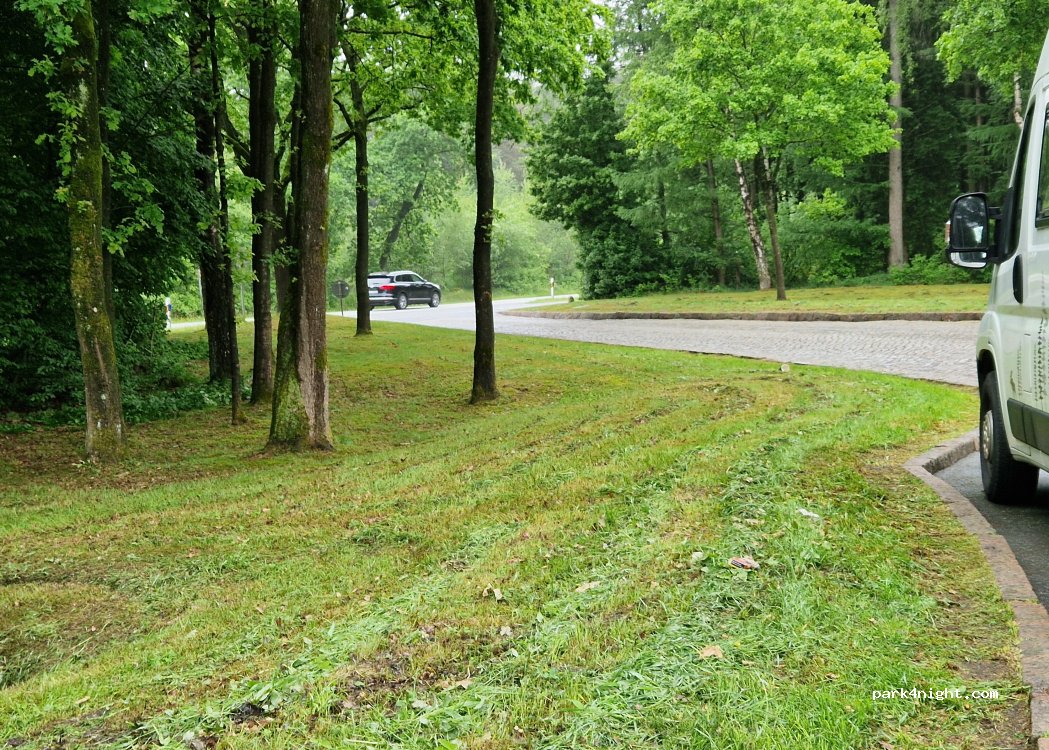Schöner Rastplatz mit vielen Bäumen und Rasenflächen. Fahrweg Kopfsteinpflaster, Parkbuchten asphaltiert. Der Platz dient auch als Zufahrt zu einem Hof, dessen Wohnhaus nah am Platz liegt. Picknicktische, Schilder "Mein Müll muss mit". Sehr schön für eine Pause, 5 Sterne, übernachten würde ich nicht. Insgesamt daher 3 Sterne.