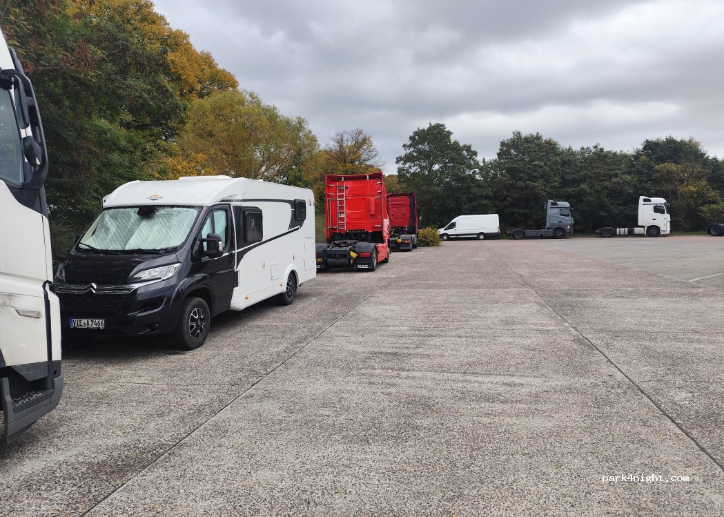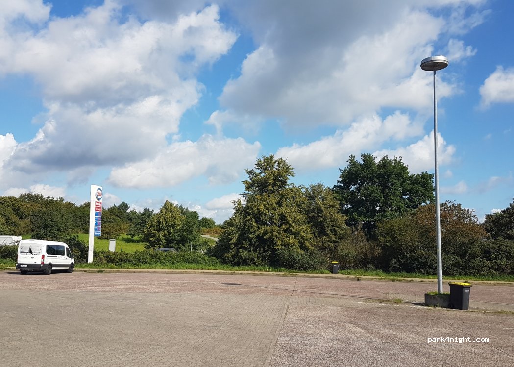 Parking à côté de la station service Esso avec douches. Vous pouvez passer la nuit ici moyennant un supplément.