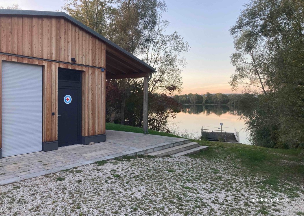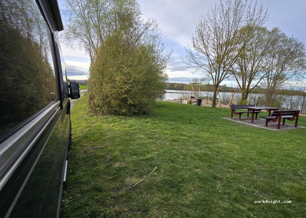 Ein paar sehr schöne Parkplätze, direkt am See, kostenlose Dusche und Toiletten. In ca. 2 km Entfernung ist die Autobahn, aber man hört sie nachts kaum. Geht auch für lange Fahrzeuge.
