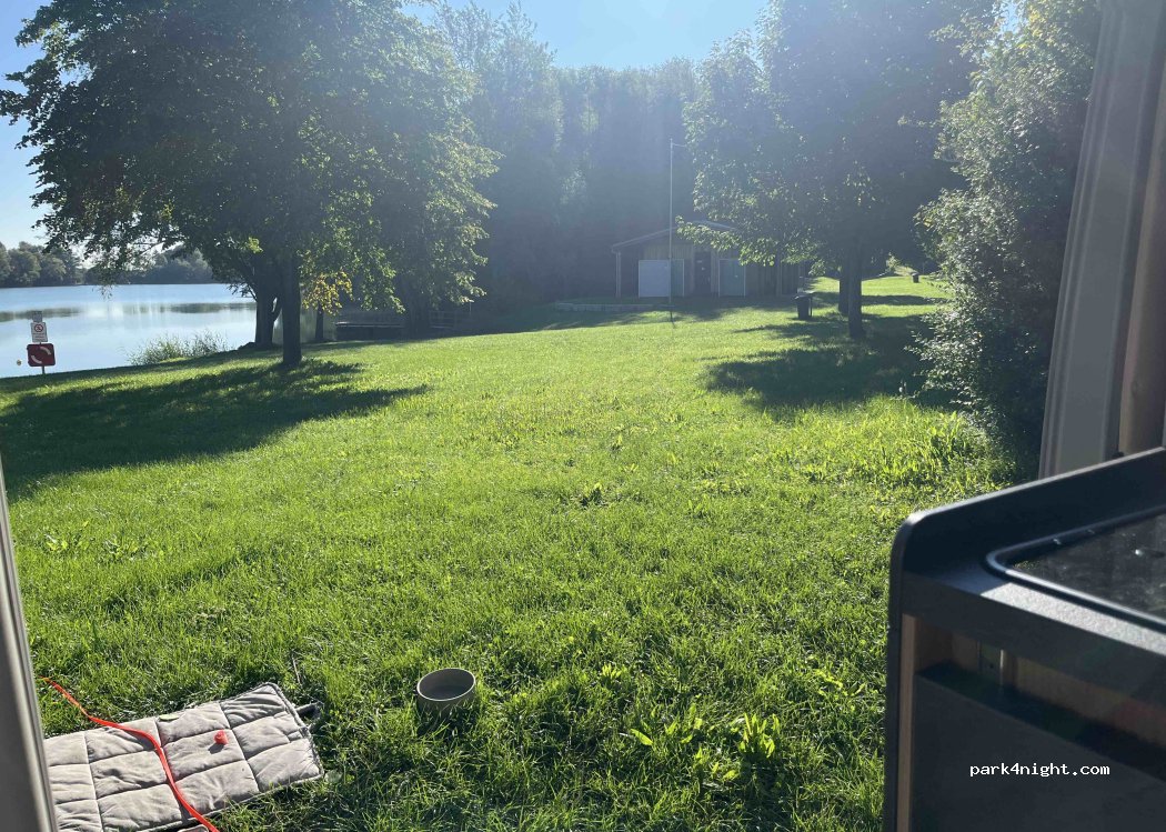 Stayed Saturday night. Very quiet and no problems. Toilets were available. Nice lake for a swim or in my case launch a canoe.