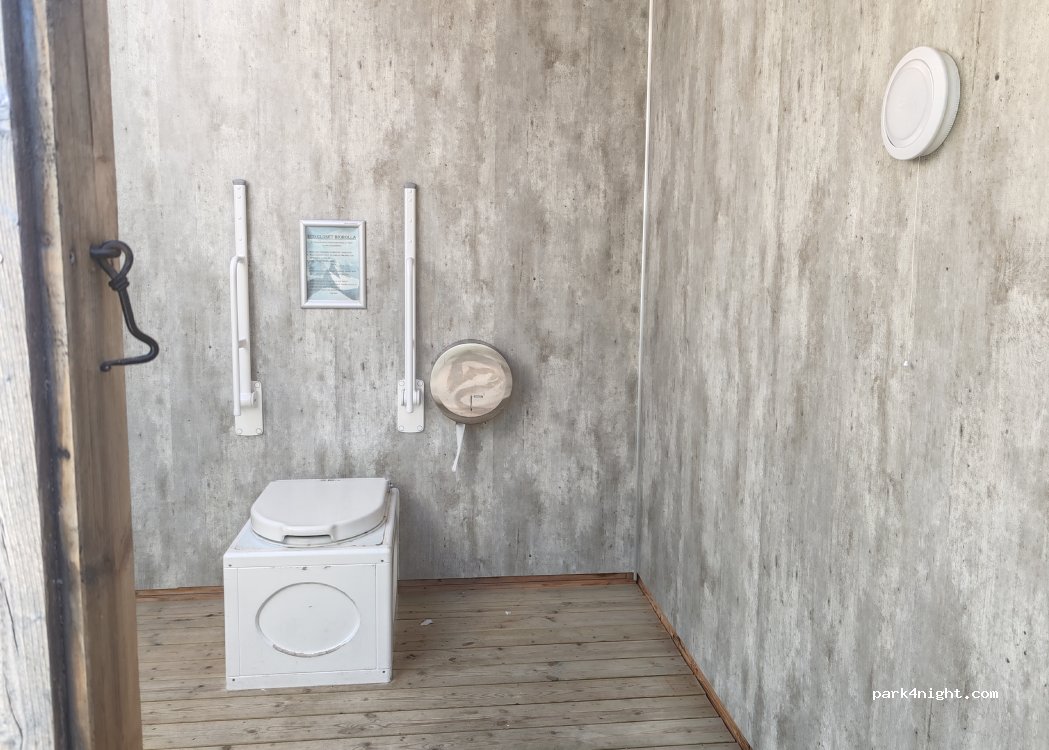 Nice view, quiet, spacious dry toilet (broken “lock” inside, be careful :)) no water. Plenty of people fishing here.