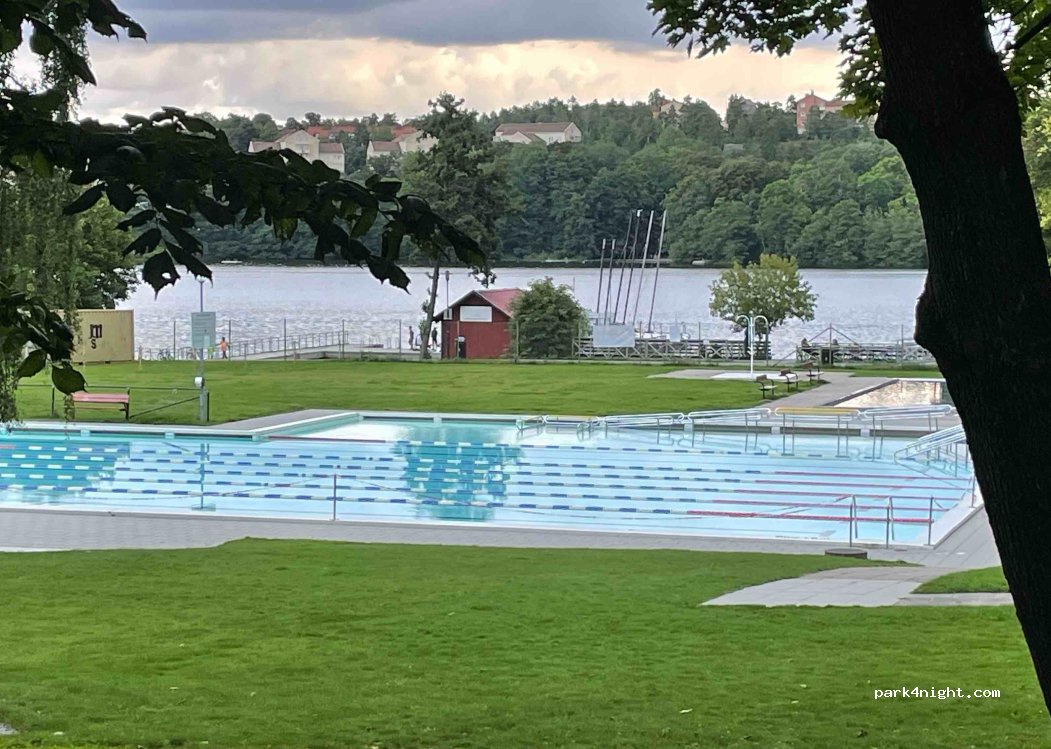 Parking muy bien situado para visitar estocolmo, con la linea de metro T10, se llega al centro en 20 min, situada a 500m del parking. Tiene unas piscinas para poder bañarse, que cuestan 100kr x pers, y te puedes bañar en el lago que hay a 150m. Es un lujo. Hay que oagar x estacionar como en todo estocolmo, 138 Kr 24h. Eso si, esta fuera de la ZbE, pero si no vas cin cuidado el maps te pueda haver pasar por ella. La noche la he pasado genial.