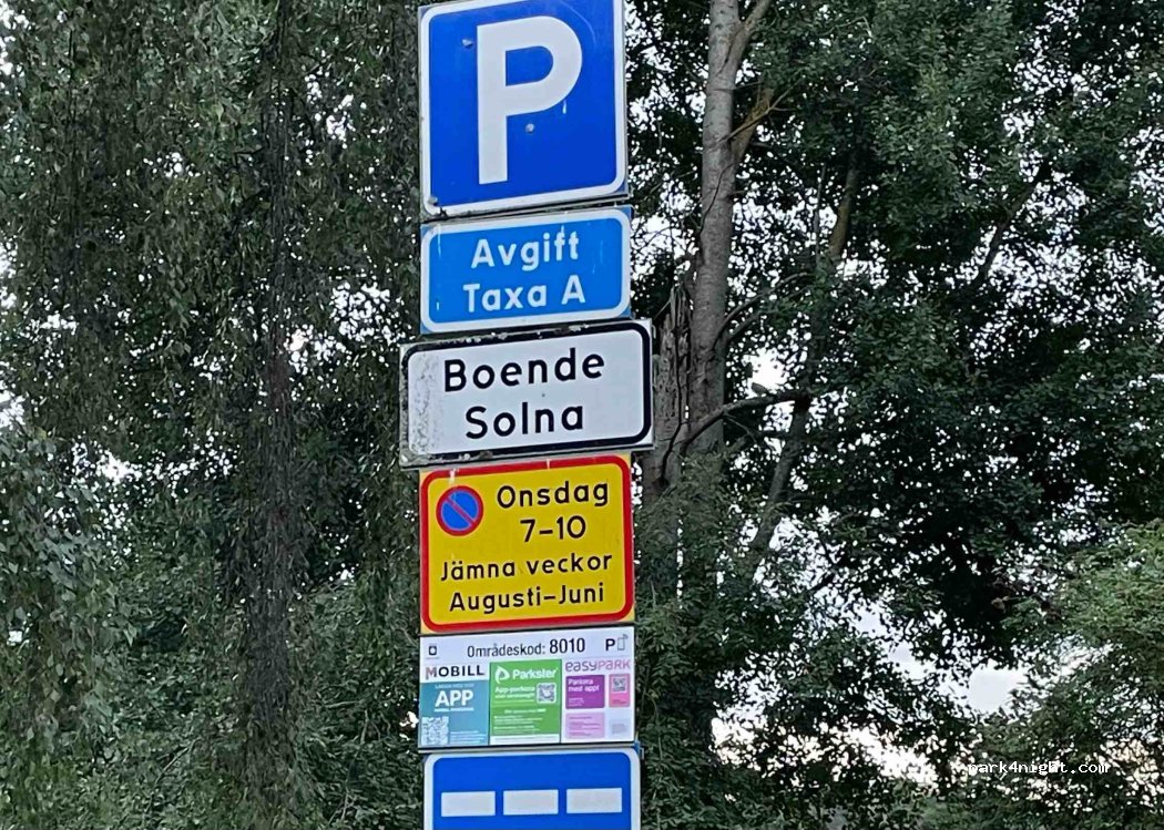 1. Erkennen von Anwohnerparkplätzen in Schweden Auf deinem Foto sieht man mehrere wichtige Elemente: • “Boende Solna” → „Boende“ heißt „Bewohner/Anwohner“. Das ist das direkte Signal, dass es sich um einen Parkplatz mit Anwohnerberechtigung handelt. Die Stadt (hier „Solna“) vergibt digitale Parkausweise.