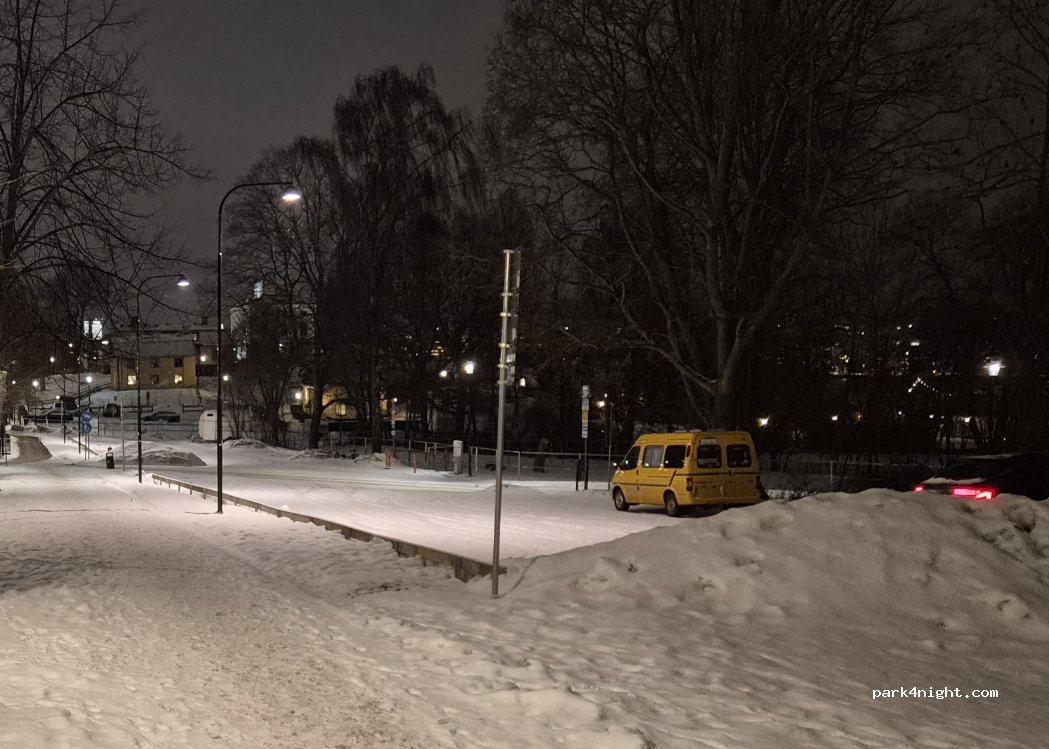 Close to subway. Very quiet and safe traditional paid parking (parking per hour or 24 hours). Located next to a small beach (free), a riding house, an outdoor pool (open in summer, costs SEK 100/adult or SEK 200 for a family). Very popular to walk along the water all the way into town. 200m up to Huvudsta Centrum with shops and subway to Stockholm. About 20 parking spaces, five or six of which can accommodate large vehicles. There is no point driving closer to the sea - parking is not allowed at all down there.