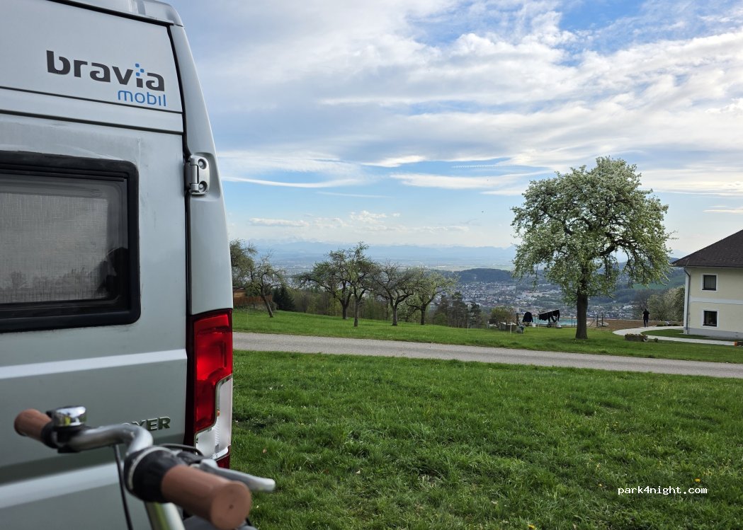 Wohnmobilstellplatz in ruhiger Lage mit Blick auf die Alpen und die Landeshauptstadt Linz