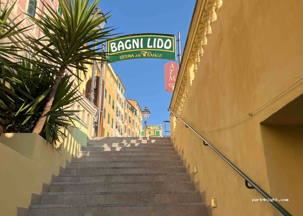 Des cabines de douche, où l'eau est froide et payante, vous pouvez aussi vous réchauffer. Il faut descendre par les escaliers, où se trouvent les tables « bagni lido » et « ATM ». Il y a aussi un distributeur automatique de billets.