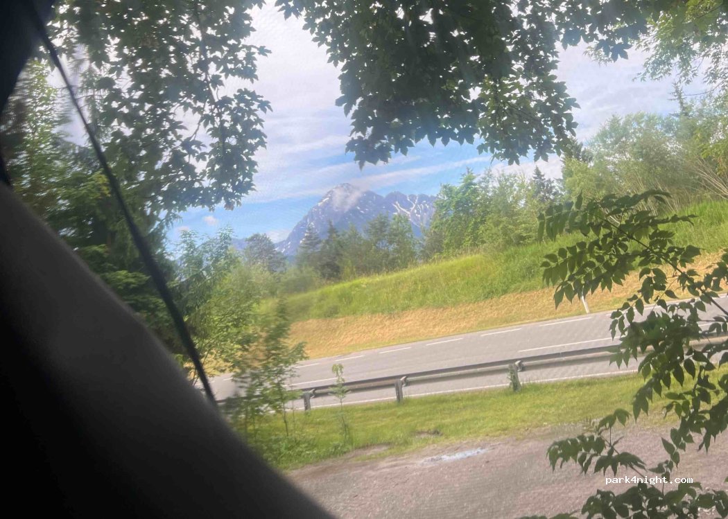 Chouette lac et toilettes dispo. Le parking est très grand mais il y a du bruit. Cela ne nous a pas dérangé pour passer une bonne nuit.