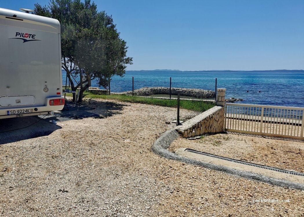 Wat een mooie rustige camperplaats..... Hele ruime plekken direct (met privé poort) aan het water. Het sanitair is nieuw en prachtig ruim van alle gemakken voorzien. Een bakker in de buurt en een supermarkt op 3,5 km afstand. Goed met de fiets Zadar te bereiken.