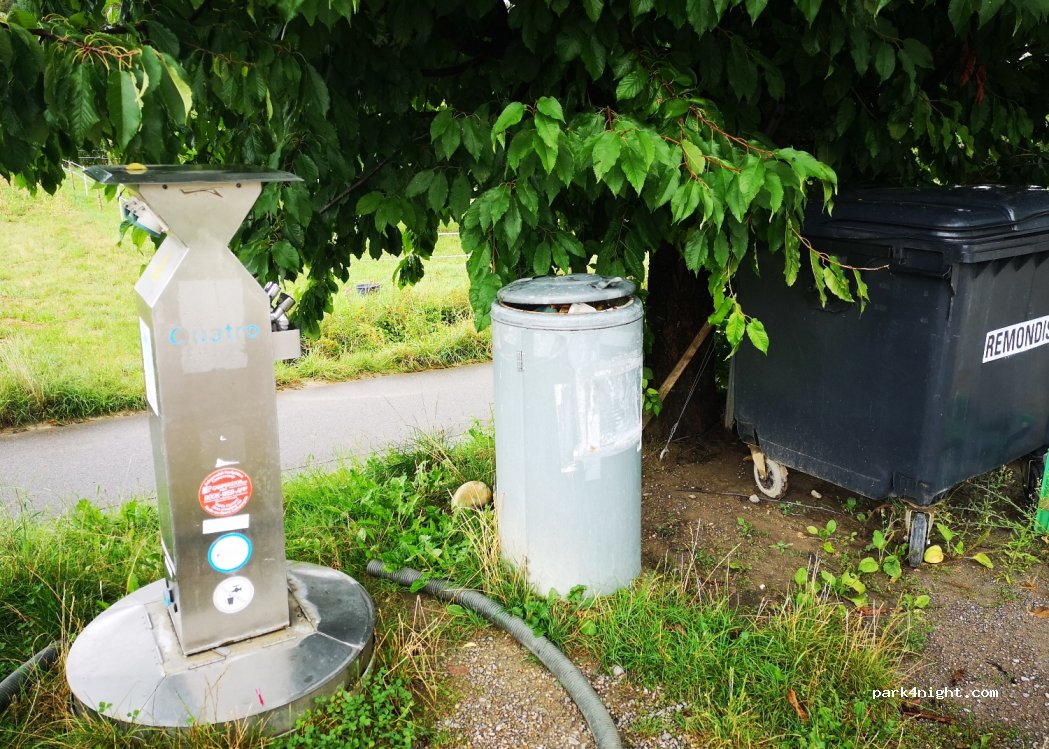 Nous sommes arrivés de nuit , faute d’avoir trouvé l’aire gratuite située plus loin. Nuit tranquille et joli cadre , mais bien qu’ayant acheté du vin et n’avoir pas utilisé les services, on nous a réclamé les 20€ … pas cool !
