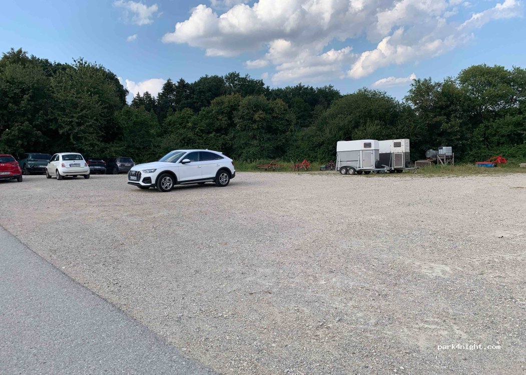 Ein ruhiger Platz. Manchmal bellen die Hunde aus dem Tierheim. Es gibt einen Pferdestall nebenan. Das Wasserwerk von Pfaffenhofen und ein Lehrbienenstand ist auch dort. Eigentlich sind es zwei Parkplätze, zuerst der „Lauftreff“ und dann der große Platz. Auf dem wird z.T. manchmal Aushub gelagert und Baumaschinen (Bagger etc.) geparkt.