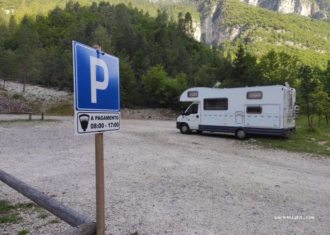 P5 roe deer parking for Lake Tovel. It is the penultimate car park where motorhomes can park. The next P4 is in any case only 500 meters further on but there is a ban on parking at night.