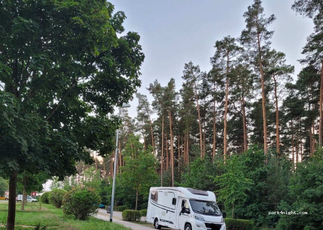Super miejsce na noc. Cisza, spokój, z nami stał jeszcze jeden kamper. Kilka samochodów rano, ludzie przyjeżdżają na spacer z psem - obok wejście do lasu i ścieżki spacerowe. Pieszo niedaleko do piekarni, sklepu spożywczego.