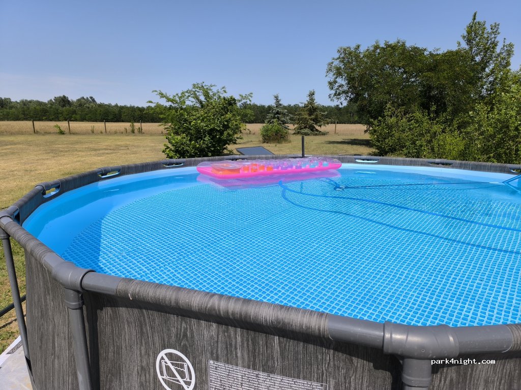 Le grand étang de baignade (35 x 15 mètres, jusqu'à 5 mètres de profondeur) est un atout majeur de notre propriété : une expérience de baignade naturelle et un rafraîchissement idéal lors des journées chaudes. Une piscine ronde de 4,57 m chauffée à l'énergie solaire est également à votre disposition, atteignant même 35 °C par beau temps – un plaisir absolu lorsque le soleil brille ! :)