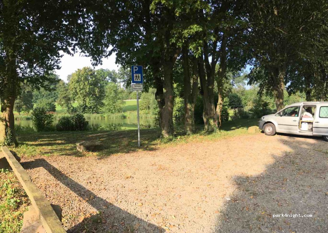 Kleiner (Wander-) Parkplatz an einem kleinen See. Platz für drei (max vier) PKW. Standen zwei Nächte hintereinander dort mit einem VW Caddy Maxi. Spaziergänger/Anwohner zu grüßen hilft :) B83 verläuft gegenüber des Sees (Hat uns in der Nacht aber nicht gestört). Parkfläche ist geschottert und minimal abschüssig.