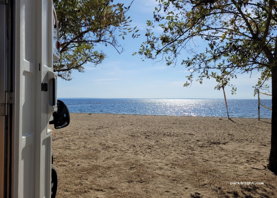 Schöner Strand, Duschen, Mülleimer. Nachts ruhig, nur ein paar Autos fahren vorbei. Wenige Bäume.