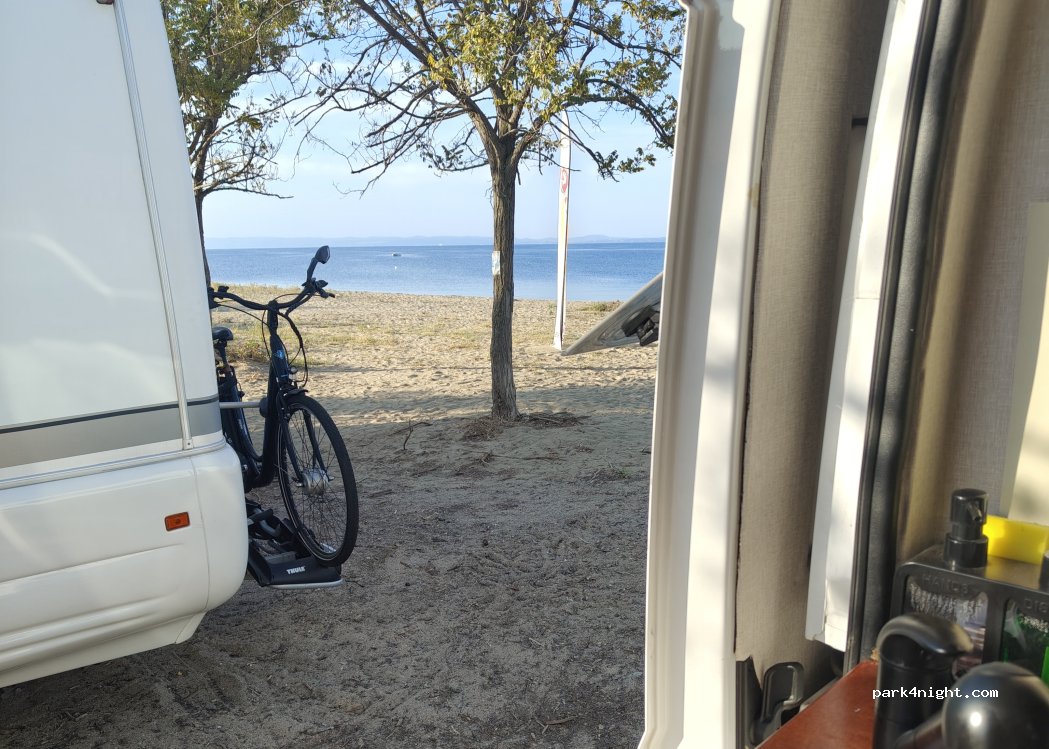 Spaliśmy jedną noc, miasteczko urokliwe, miejsce dobre, blisko plaży, obok bar z leżakami, prysznic, kosze na śmieci, nawet nie bardzo brudno. nikt nas nie zaczepiał, nie przeganiał. stały w sumie 3 kampery.