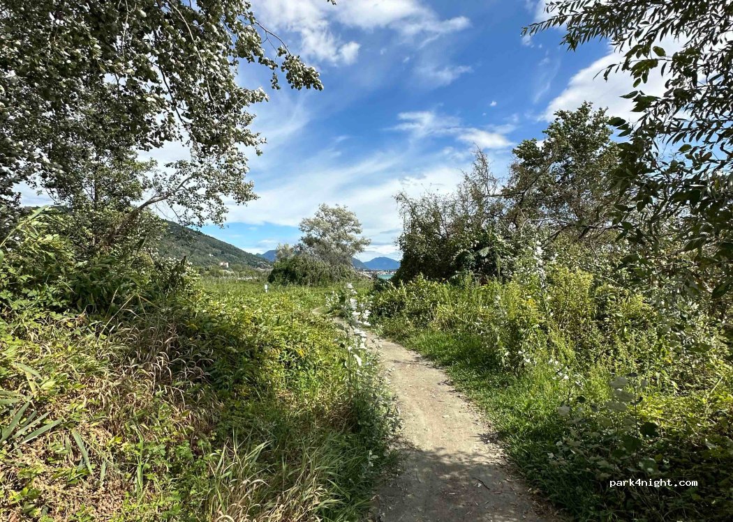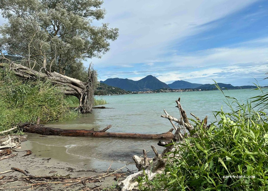 Parking space on the side of the road. A short walk towards the lake reveals a great swimming spot on Lake Maggiore. Ideal with dogs. You can also walk along the river. trash can available. Otherwise no supply.