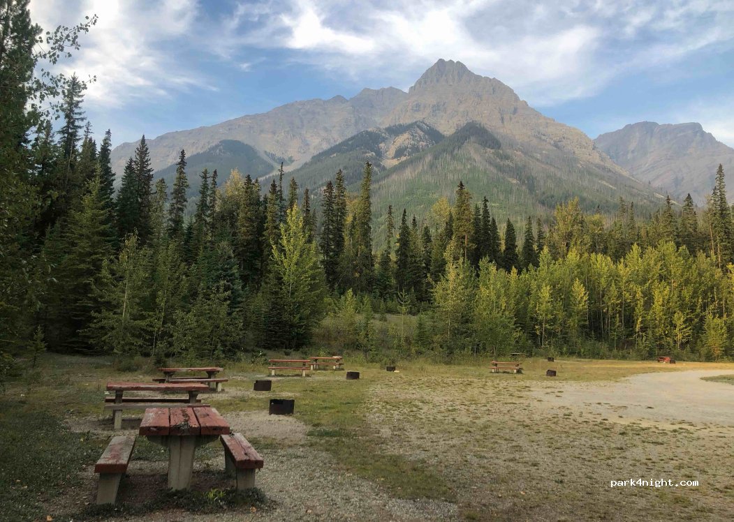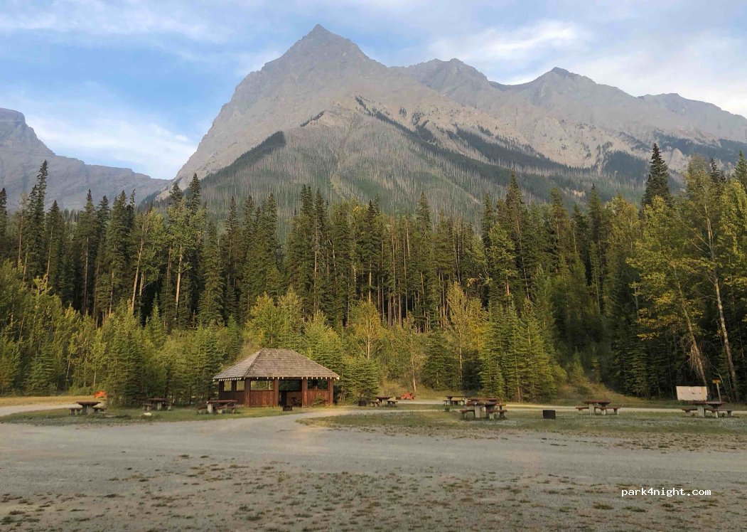 Beau site, c’est le overflow du Hoodoo creek campground (actuellement fermé). Il y a des toilettes, des tables, possibilité de faire des feu et un endroit pour faire à manger à l’abri de la pluie.