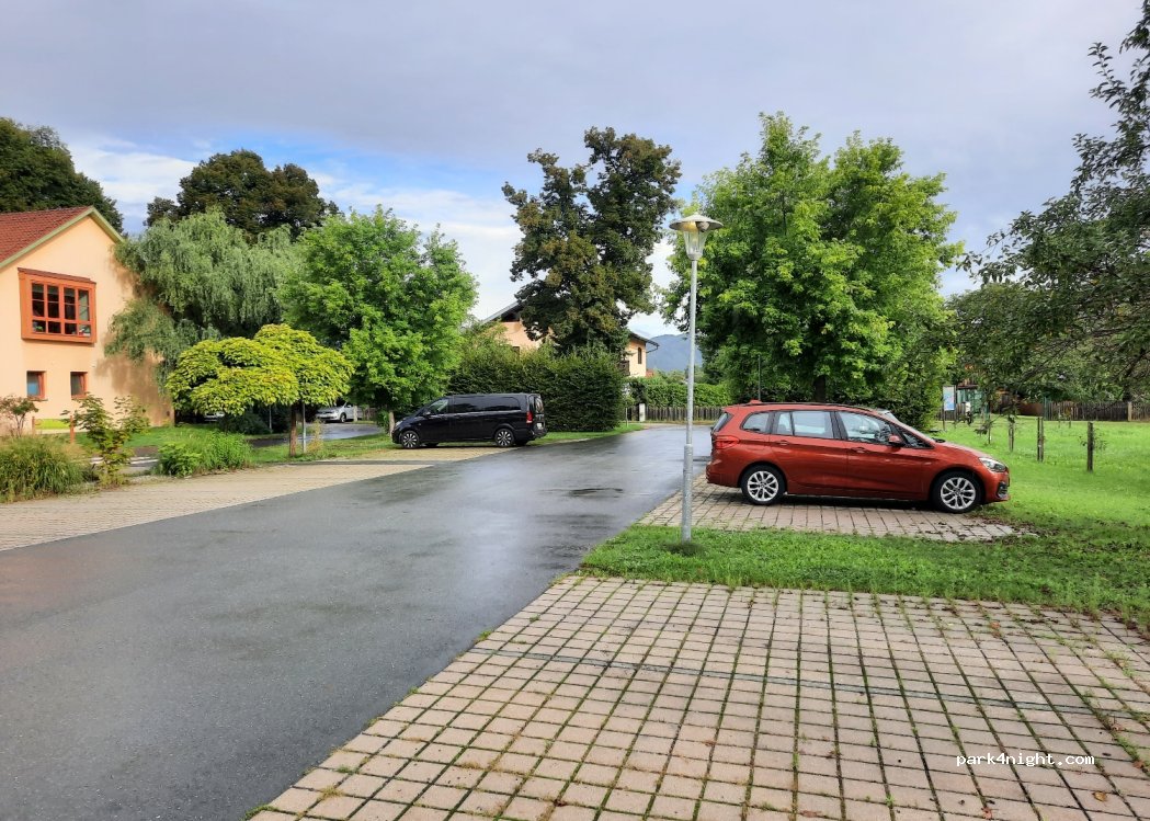 Parkplatz in der Nähe von Park und Krankenhaus. Sehr ruhig. Gut für eine Nacht auf der Durchreise. Anfahrt etwas eng durch ein Wohngebiet.