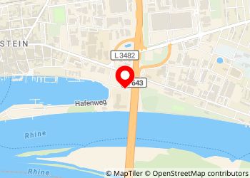 Hafenweg in Wiesbaden. Asphaltierte Straße mit seitlichen Parkmöglichkeiten.