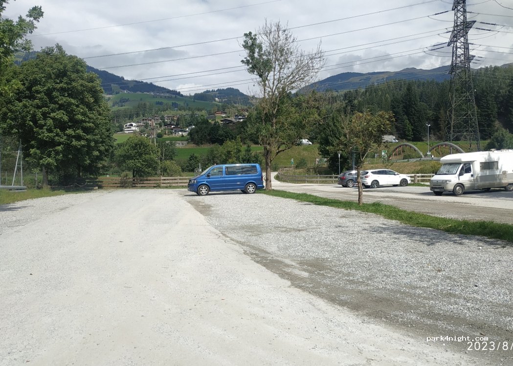 Large parking lot next to a sports field. The small village is easy to explore on foot and there is a small tourist information office next to the large hotel. Only from 8 a.m. to midnight, no overnight stay