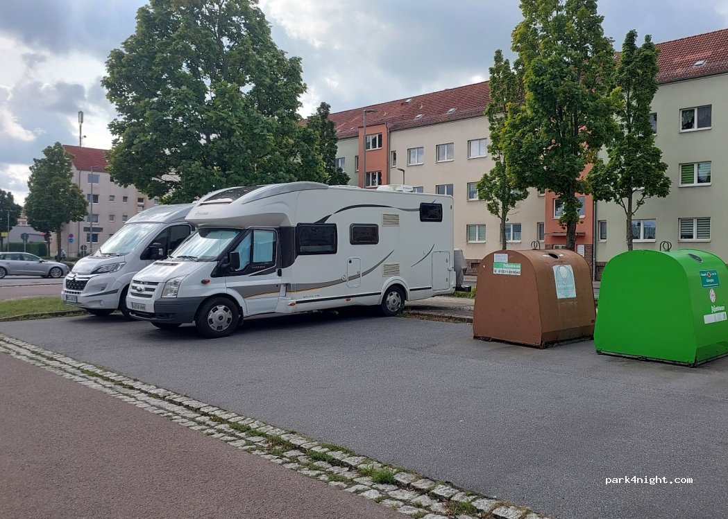 Zwei große Parkplätze neben dem Müllcontainer und vor dem Parkplatz für Autos. Lärm, da es an einer Hauptstraße liegt. Kein Aufschrei des Übernachtungsverbots.