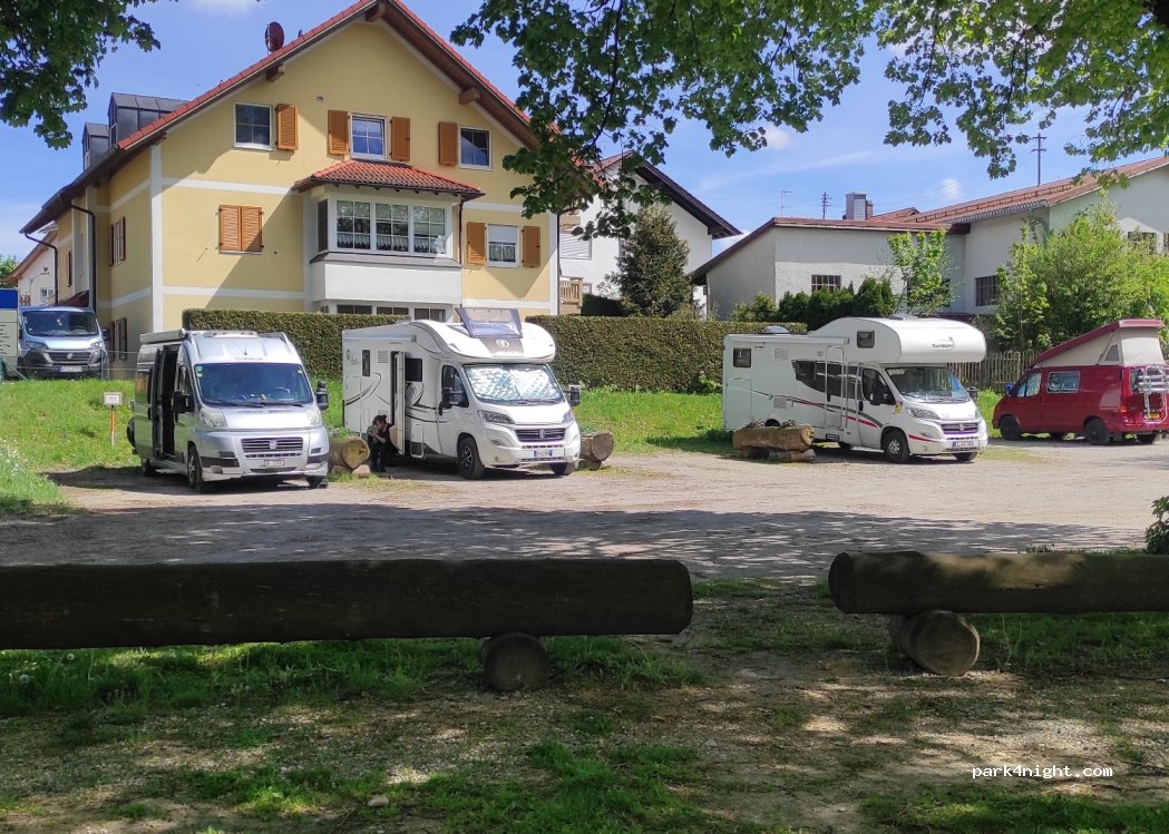 Ausgewiesen für fünf Camper. Camper außerhalb der ausgewiesen Stellplätze bezahlen 60,- Strafe. Wird während der Freibadsaison regelmäßig durch die Gemeinde kontrolliert.