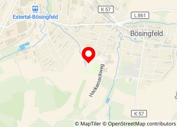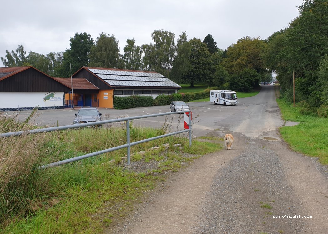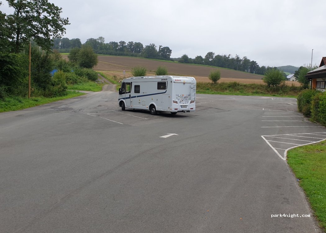Le petit parking non plat de la piscine extérieure de Bösingfeld peut être plein pendant la journée en été. Très calme la nuit, bon point de départ pour des balades avec et sans chien. Situation en périphérie.