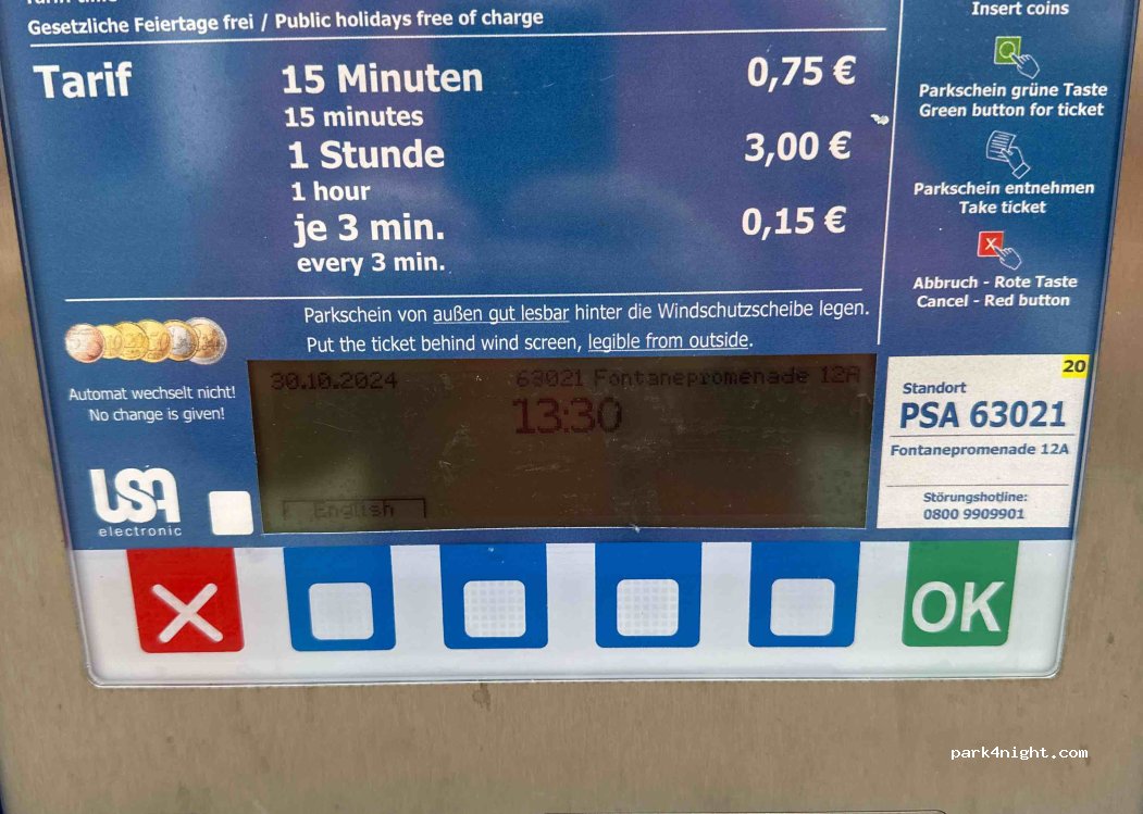 Nur mit Parkschein: Mo bis Sa von 09.00 bis 22.00 Uhr, je Stunde 3€