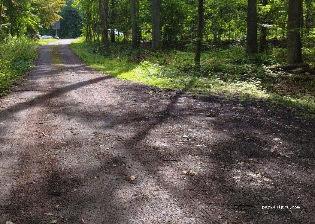 Kleine Parkfläche in einem Waldweg in der Nähe der Straße.