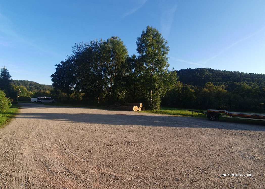 Simple parking lot, very quiet, gravel. Directly on the Neckartal cycle path 250m to the swimming pool