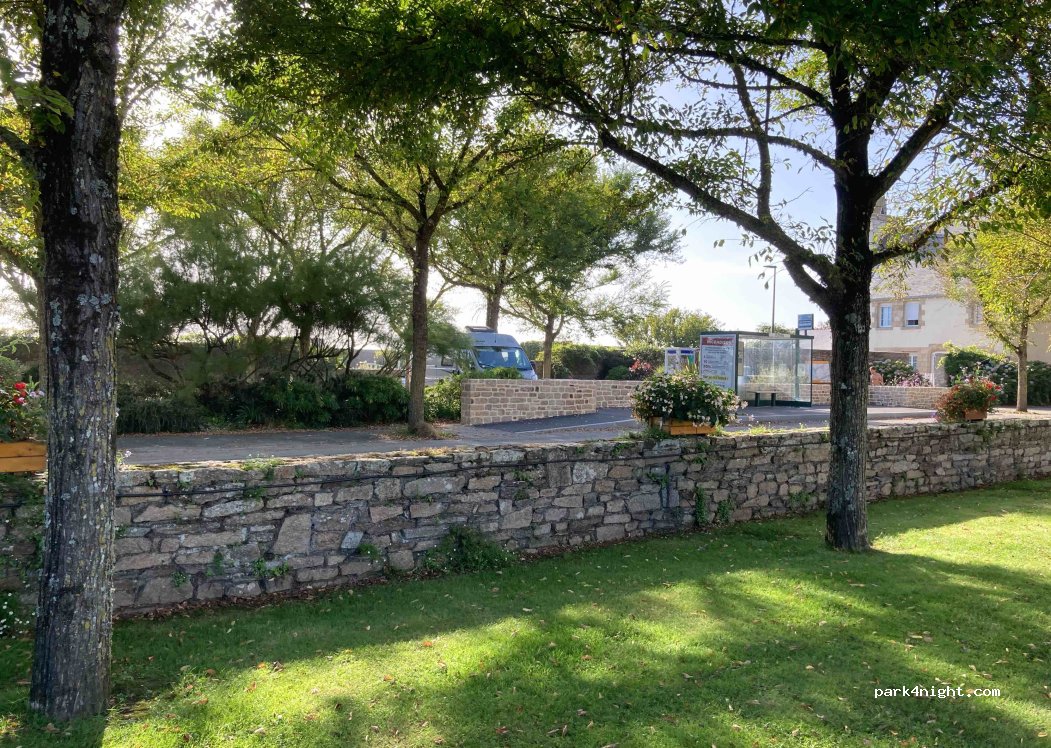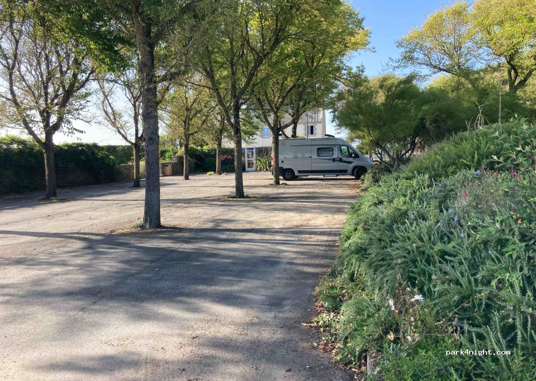 nous avons choisi le parking côté jardin public car notre van passe facilement sous les arbres. nous confirmons que cet endroit est des plus agréables, fleuri, avec des toilettes très propres et des lavabos à proximité immédiate. nuit calme, attention toutefois à la nuée de moustiques qui a envahi notre van (c'était de notre faute). merci à la municipalité pour cet endroit et ces services.