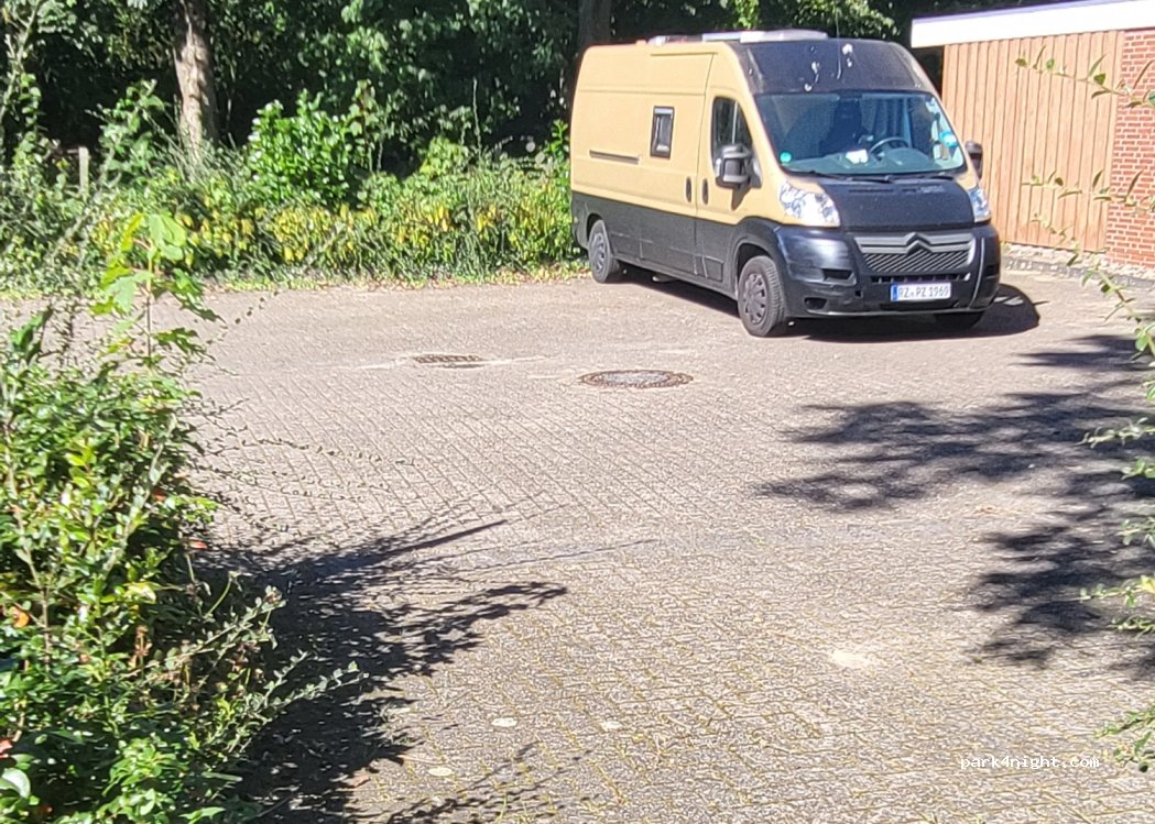 Platz für 4-5 Wohnmobile ( je nach Größe ). Parkbuchten sind auf PKW Maße angelegt.