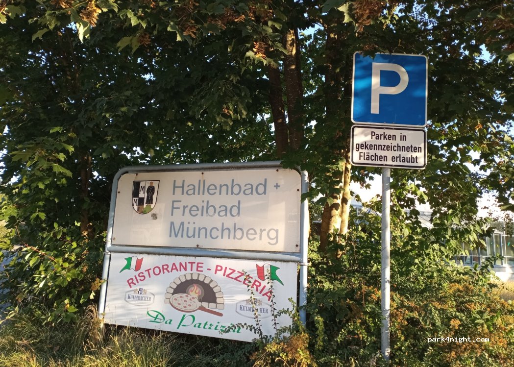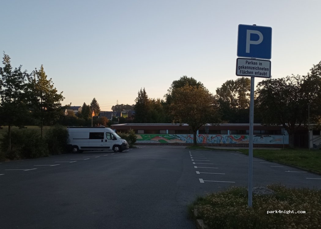 Parkplätze Tag und Nacht neben dem offiziellen Stellplatz, rund ums Hallen-, und Freibad. Am offiziellen Stellplatz und Hallen- und Freibad, können die Dienste in Anspruch genommen. Sehr ruhige Gegend in der Nähe einer Sackgasse. Auch gut geeignet, falls der offizielle Stellplatz voll ist.