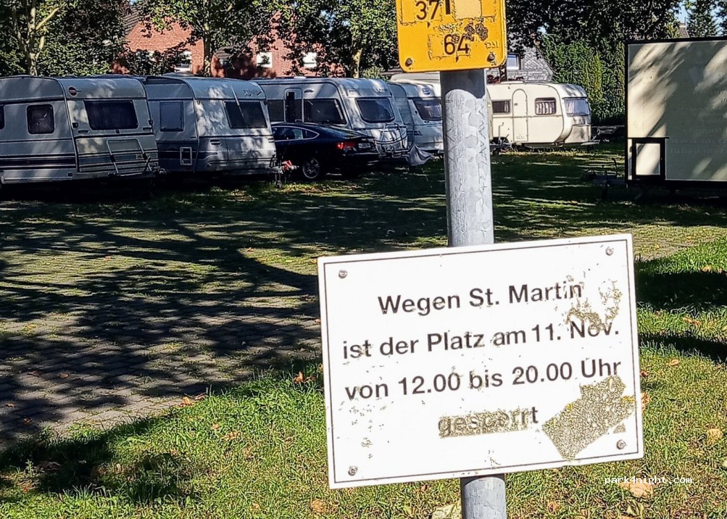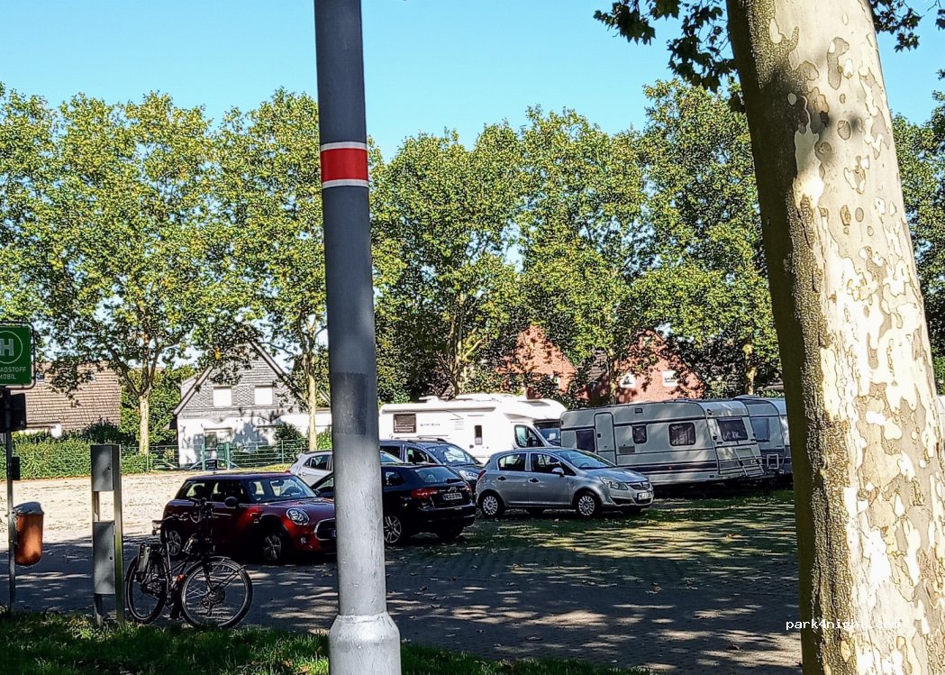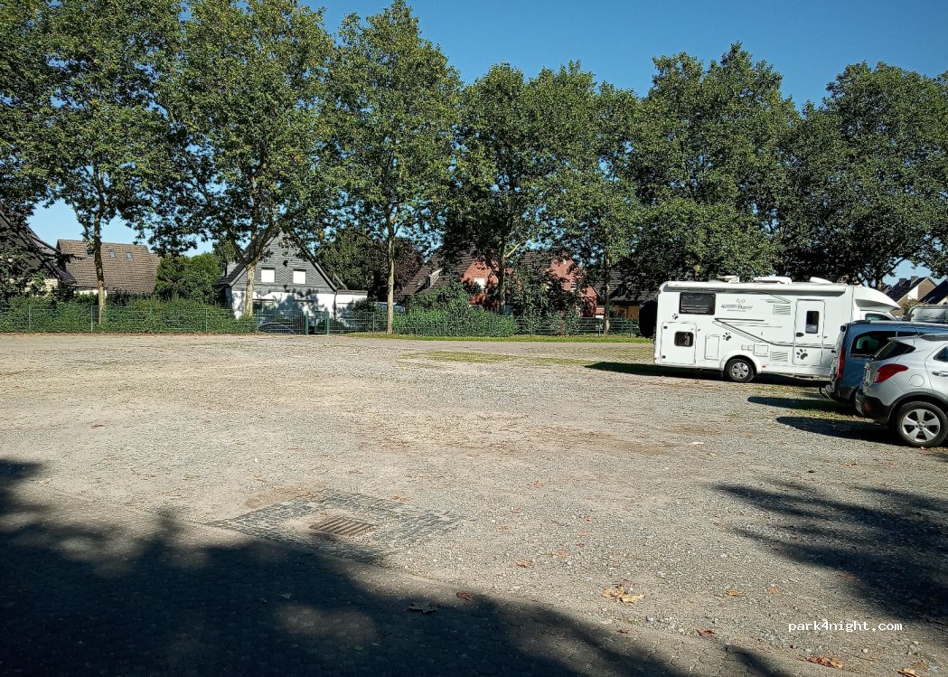 Schöner kostenloser P, man hat die Wahl zwischen Sonnenplätzen und unter Bäumen im Schatten. Wer die Entfernung nicht scheut, hat hier eine ruhige Alternative für einen Messebesuch in Düsseldorf. Mit Fahrrad auf flachem Fahrradweg via A44 Rheinüberquerung zum Messeeingang Süd sind es gerade mal 9 km. Im Ort mehrere Lokale, eine Eisdiele, Bäcker und Lebensmittelgeschäfte. Keine V/E.