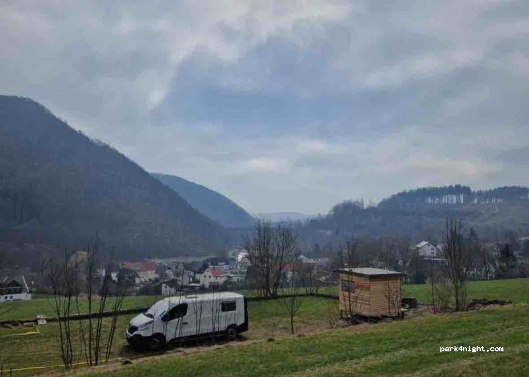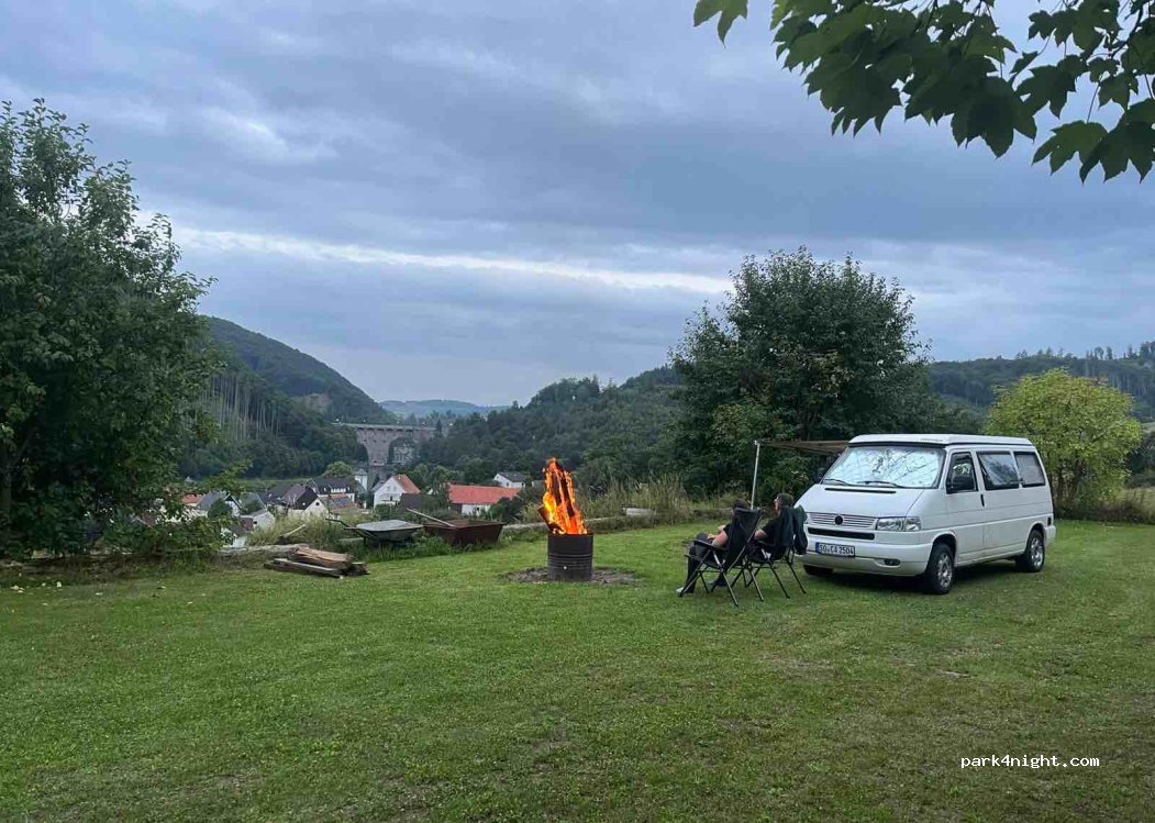 Private parking space! Don't come spontaneously! Advance booking is mandatory! Exclusive space for a camper, with peace and quiet to relax and hike :) (Enquire about Anja's Torterei) Welcome to the Birkenhof! Your parking space for the night is next to a no longer managed farm on a former riding arena (now a paved lawn). You park at table level on the south-facing slope and enjoy the view of the Sauerland countryside and across the valley to the dam of the Diemelsee. Please use the contact function by email, as we are not always at home due to work. Please do not enquire at the holiday apartment which is at the address, this has nothing to do with the parking space. Arrival from 3 p.m. and departure by 12 p.m. Other times possible by arrangement. Please do not come spontaneously!!