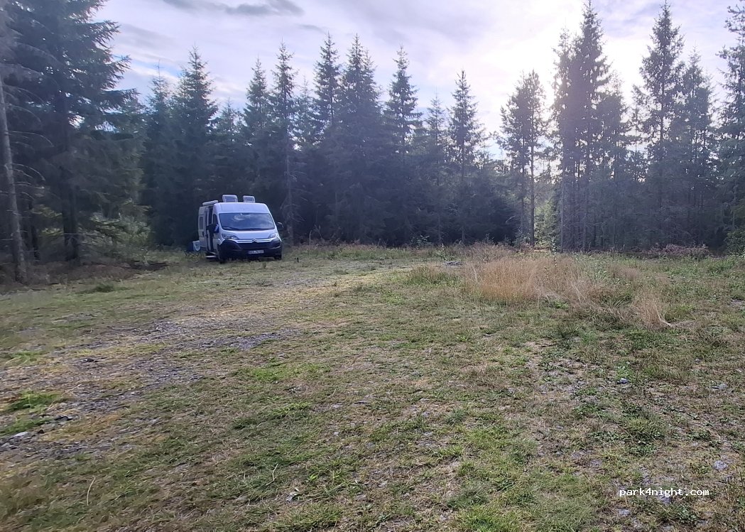 Ruhiger Platz, man fühlt sich fast wie ganz allein auf einer Lichtung im Wald. Kleiner malerischer See in 2 min Fußweg erreichbar. Teilweise geschottert, sodass man gut gerade stehen kann. 2 Feuerstellen. Wir hatten 5G sehr guten Empfang. Man hört vor allem den Wald, manchmal die Straße, aber kaum befahren. Wir haben hier eine Nacht gut geschlafen.