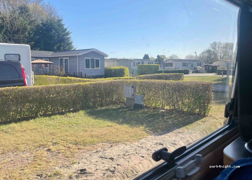 Camping met stacaravans maar heeft enkele plaatsen voor campers; de ingang is via een pad tussen een heg en een hek, een beetje smal maar als je goed oplet, lukt het wel. Aardig stel bij de receptie die alle informatie geven, badkamers, douches en camperplaats met zandgrond