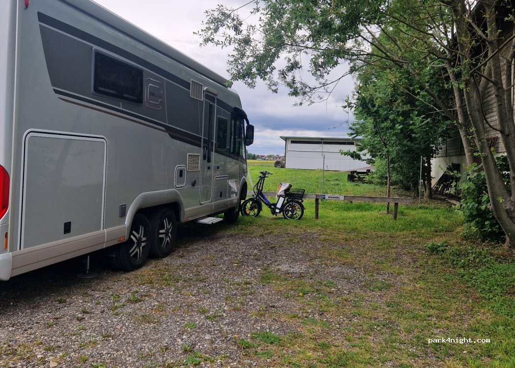 Sehr freundliche Besitzer, unkomplizierter Kontakt. Sind spontan vorbeigefahren und standen eine Nacht auf der Wiese. Schöner Ausblick auf die Berge. Fußläufig Eierautomat mit selbstgemachten Eis, Nudeln, ... Gerne wieder ☺️