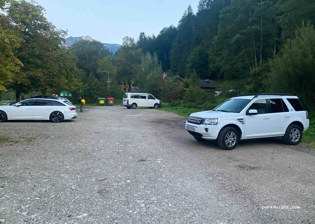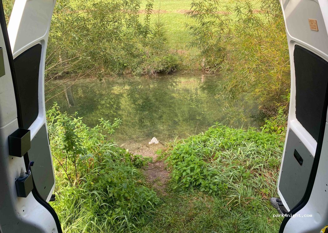 Parking calme à Offensee. Quelques randonneurs s'y garent pendant la journée. Je me suis arrêté à un endroit avec un accès direct à l'eau.